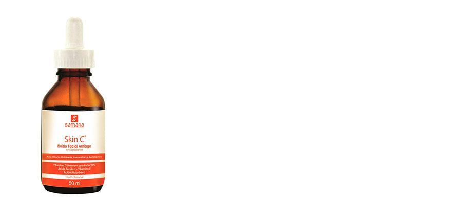 Skin C Fluído facial é composto por vitamina C Nanoencapsulada 20% associada a vitamina E e ácido ferúlico. Esses princípios ativos associados atuam como poderosos antioxidantes e previnem o envelhecimento da pele. Após a aplicação, a superfície cutânea torna-se imediatamente mais hidratada, renovada e iluminada, Para resultados mais efetivos, pode ser associado a eletroterapia.